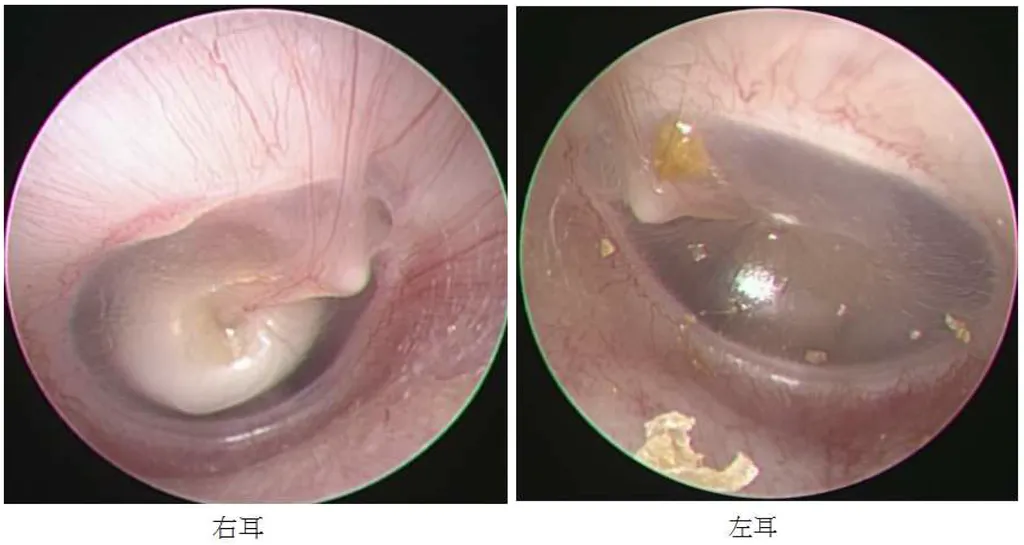 【107-2 醫學(六) 第21題】病人因單耳聽力不佳,到耳鼻喉科看診,耳鏡檢查如下圖,最可能之診斷為: