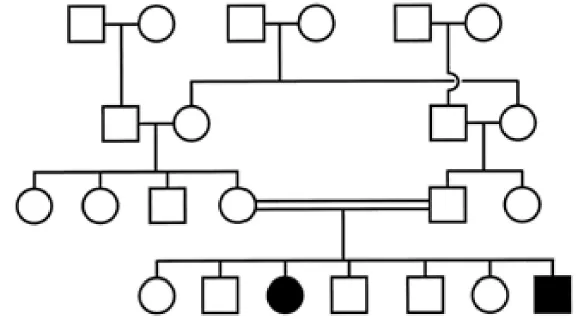 【108-1 醫學(四) 第30題】3個⽉⼤的女嬰經診斷為體染⾊體隱性遺傳的Phenylketonuria,致病原因為缺乏Phenylalanine hydroxylase (PAH),其家族譜系如附圖。哥哥和姊姊分別為6歲和4歲⼤,無任何臨床症狀,發育發展皆正常。哥哥和姊姊帶有突變基因影響到PAH活性的機率為何?