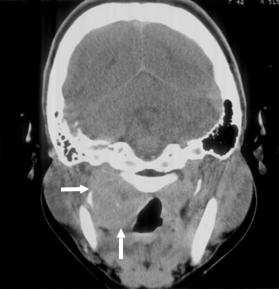 21歲男性因上頸部硬塊求診,接受對比劑注射後的電腦斷層掃描如圖⽰,則最可能診斷為何?