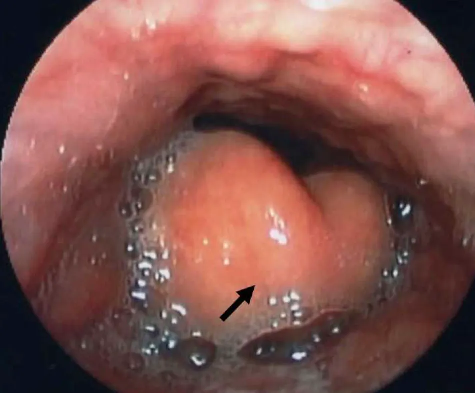 【108-2 醫學(六) 第23題】40歲男性,因發燒、咽喉疼痛、吞嚥困難、呼吸急促等症狀至急診就診,會診耳鼻喉科進行咽喉內視鏡檢查如下圖,下列敘述何者正確?