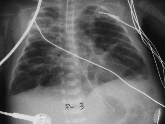 下圖為一孩童之胸部X光素片,最可能的診斷為:
