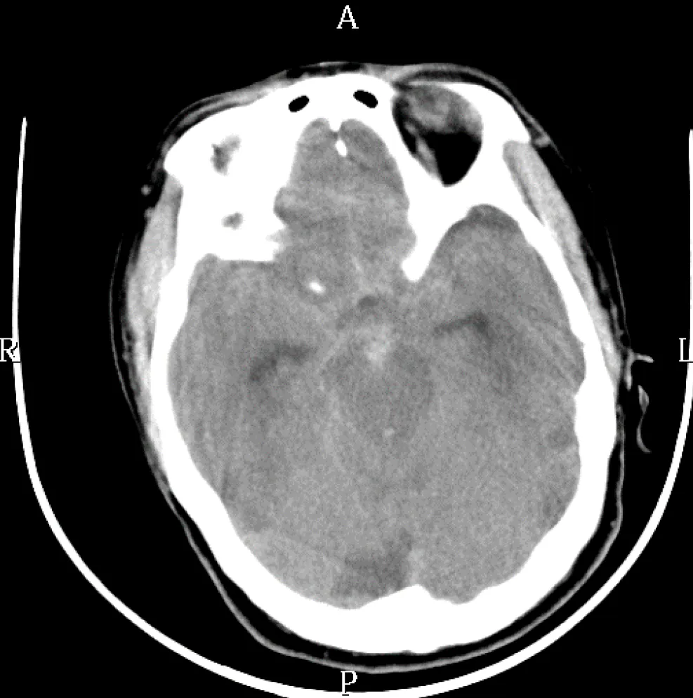 【109-2 醫學(四) 第75題】72歲男性,突然昏倒,送急診室,未注射對比劑之腦部電腦斷層(CT)檢查如圖,診斷是: