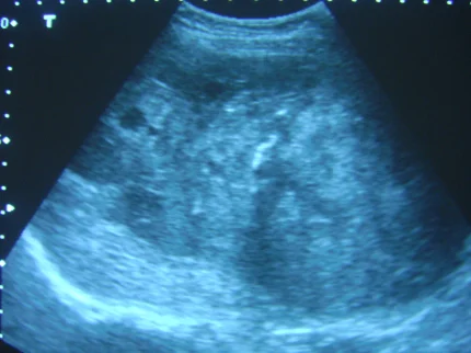 【110-1 醫學(三) 第75題】下列兩張圖為肝之超音波掃描,以下相關敘述何者錯誤?