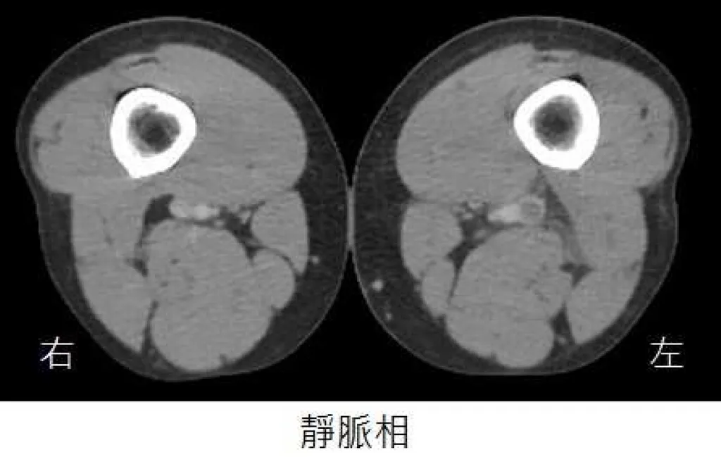 35 歲男性病人,主訴持續一星期的單側下肢腫脹,但無發燒症狀。雙側下肢靜脈注射顯影劑電腦斷層影像如圖所示,下列關於病況的敘述何者最恰當?