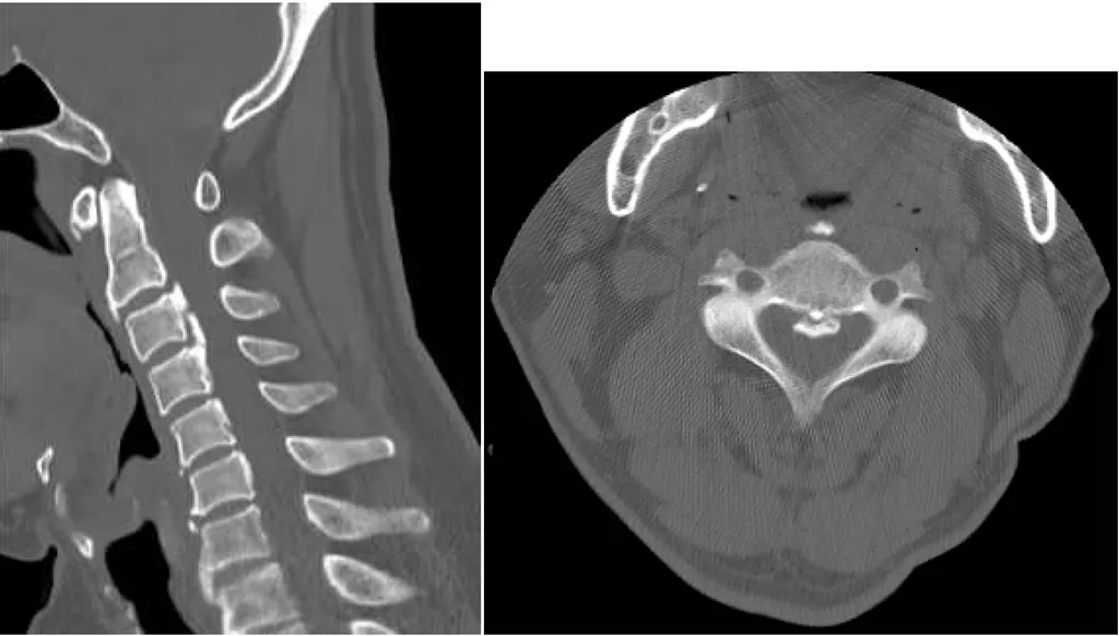 60 歲男性病患因長期頸部疼痛接受電腦斷層檢查,發現第歲男性病患因長期頸部疼痛接受電腦斷層檢查 3 至第 4 頸椎有一鈣化病灶如圖。其診斷為何?