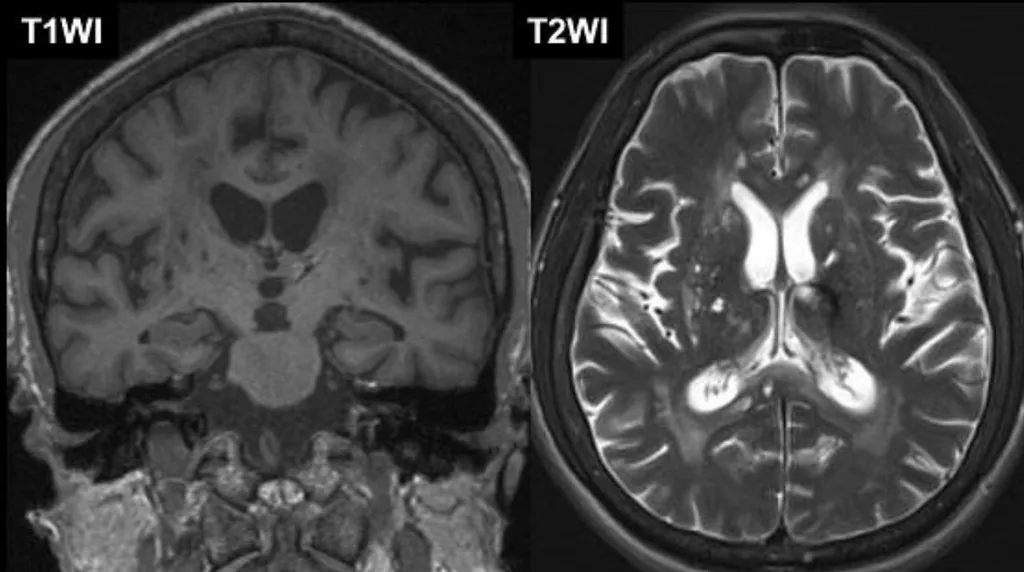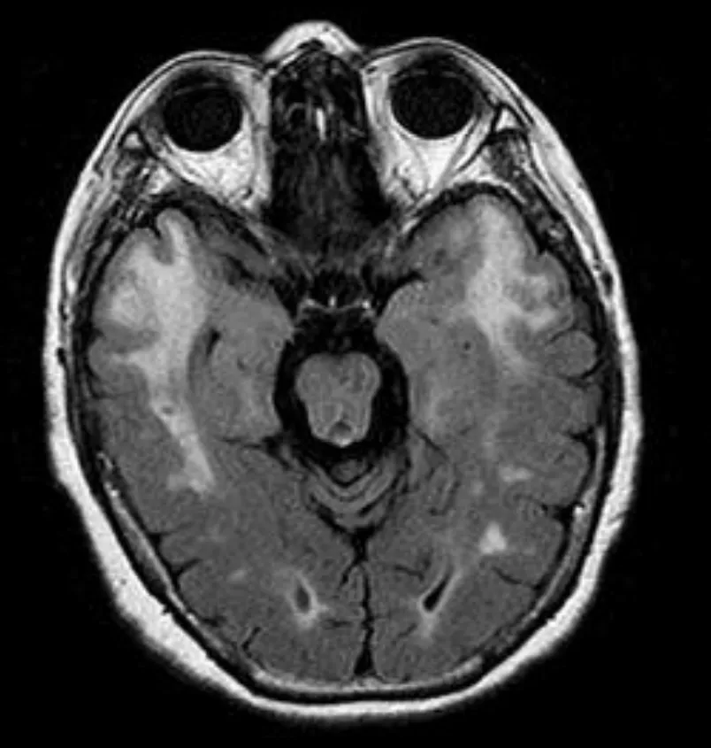 【111-2 醫學(四) 第74題】55 歲男性由於認知功能退化到精神科求診,根據所附頭部磁振造影(MRI)影像,下列何者為最可能的診斷?