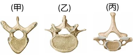 【111-2 醫學(一) 第29題】下列甲、乙、丙三個椎骨,在脊柱由頭端往尾端的排列順序為何?