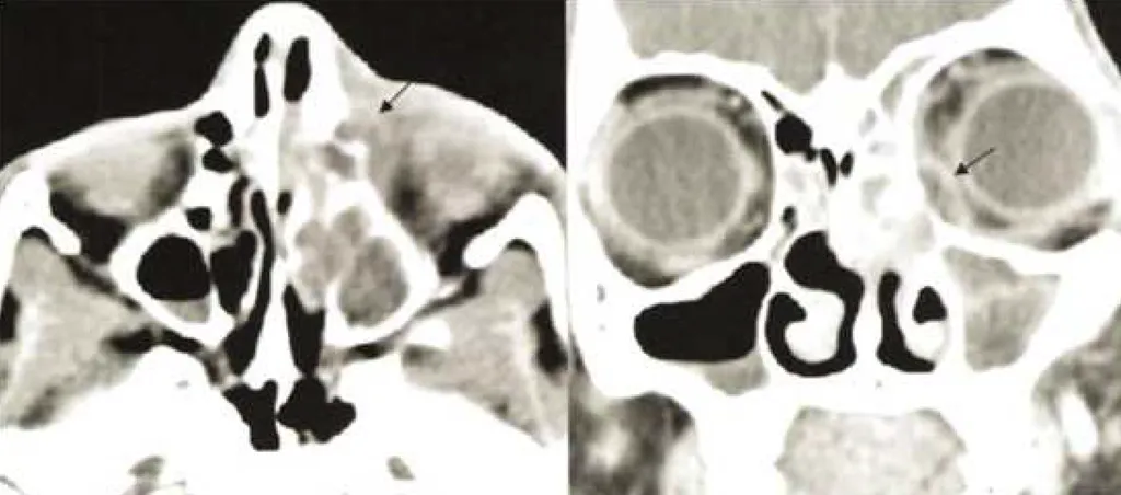 【113-1 醫學(六) 第23題】急性鼻竇炎(acute rhinosinusitis)之眼部併發症,依據 Chandler 分類,圖中的病例屬於那一類?