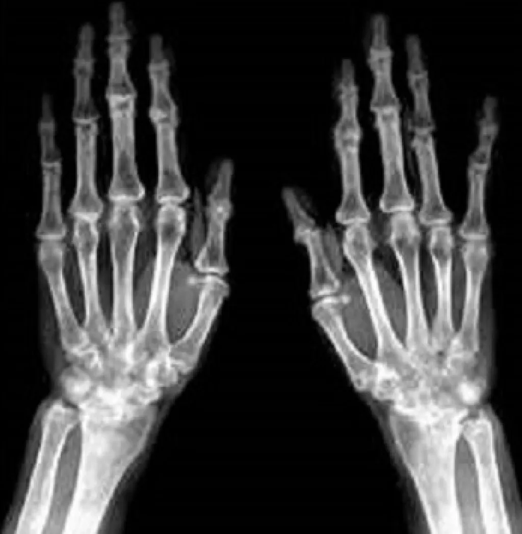 【113-2 醫學(五) 第74題】57歲女性雙手多處關節腫痛,雙手X光檢查如附圖,最可能的診斷為何?