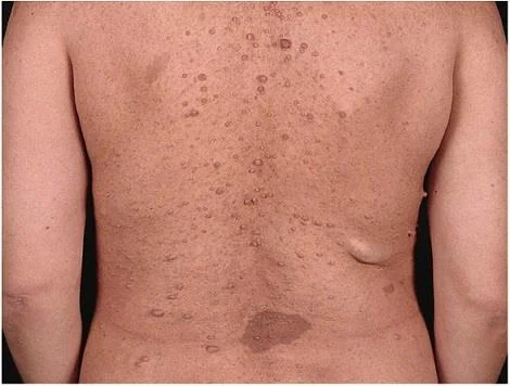 【114-2 醫學(四) 第41題】55 歲男性病人,後頸部出現腫塊已經數個月了。病理切片顯示 pandermal thickening with broad collagen bundles separated by mucin deposits。下列何者是此皮膚症狀較可能合併的疾病?